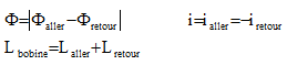 Si les régions aller et retour d'une bobine sont décrites, l'inductance de cette bobine est égale à la somme des inductances calculées sur les régions aller et retour :