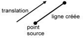 Une ligne peut être créée par extrusion d'un point existant à l'aide d'une transformation. Cette transformation permet d'obtenir le point d'arrivée à partir du point source.
