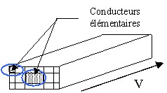 Dans le cas d'un maillage 1D, le conducteur est décomposé en conducteurs élémentaires de section plus petite (cf. figure ci-dessous).