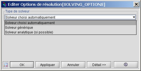 Pour effectuer le choix du solveur, l'utilisateur doit ouvrir la fenêtre correspondante :