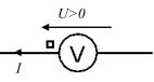 | Source de tension (avec U > 0) : le courant sort par