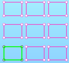• répétition linéaire (vecteur) : répétition selon un vecteur défini par un delta sur les abscisses (Dx) et un delta sur les ordonnées (Dy) et un nombre de répétitions.