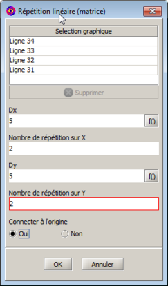 Les champs « Dx », « Dy » et « Nombre de répétitions » sont remplis