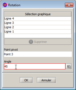 | Point pivot | Permet de renseigner le point pivot autour duquel la rotation sera appliquée, en le sélectionnant graphiquement |