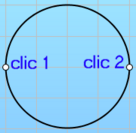 | 2 | 1er clic gauche : fixe le premier point du diamètre du cercle | |