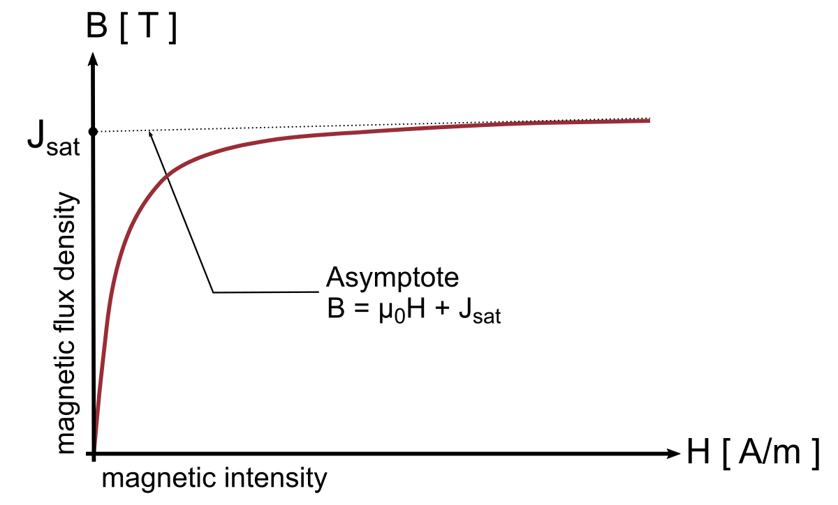 saturation Jsat étiquetée 1.4 in Figure 1. Note: La valeur de Jsat est mesurée en teslas et peut être obtenue à partir d'une courbe B(H) anhystérétique comme montré dans la Figure 3.