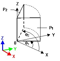 - le premier plan (P1) est défini par sa position angulaire par rapport au plan principal ZOX (XOY, YOZ respectivement) : angle de début ( θ1)