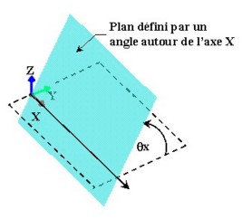 Un exemple de plan défini par un angle autour de l'axe X est présenté ci-dessous.