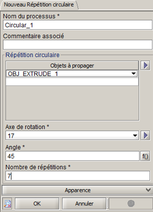 | 2 | Ouverture de la boite de dialogue Répétition circulaire |