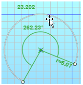 Rayon, Angle, abscisse curviligne et les coordonnées du centre