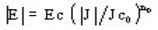Les matériaux supraconducteurs sont caractérisés par une caractéristique courant tension hautement non linéaire. La relation entre le champ électrique et le courant peut s'exprimer sous la forme d'une loi en puissance :