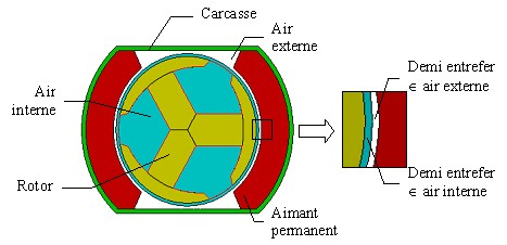 - le demi entrefer en contact avec le stator appartient à la région Air externe (partie fixe)