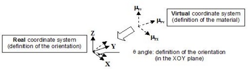 To orient an anisotropic material in a region, it is necessary to choose a coordinate system (real coordinate system) for orientation.
