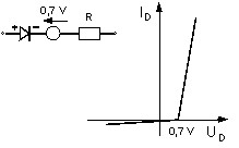 If we consider the equivalent diagram of the diode represented in the figure below, the voltage UD at the diode terminals is given by the sum: