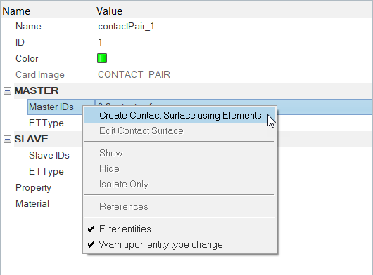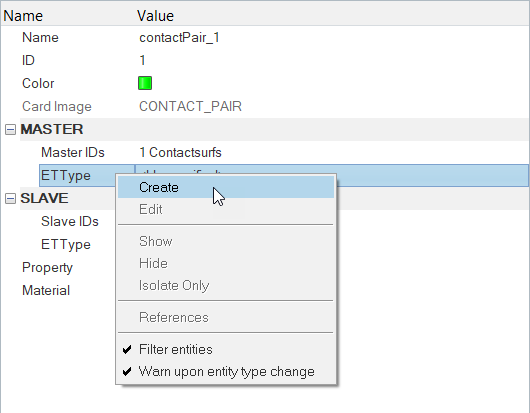 - Right-click on contactPair_1 in the second pane of the Contact Browser.