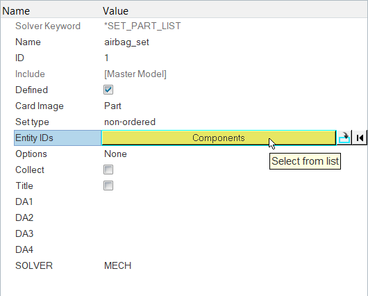 In this step, you will define *AIRBAG_WANG_NEFSKE for the airbag mesh geometry.