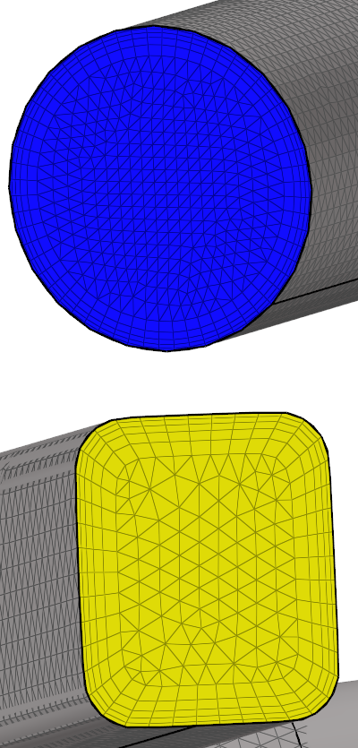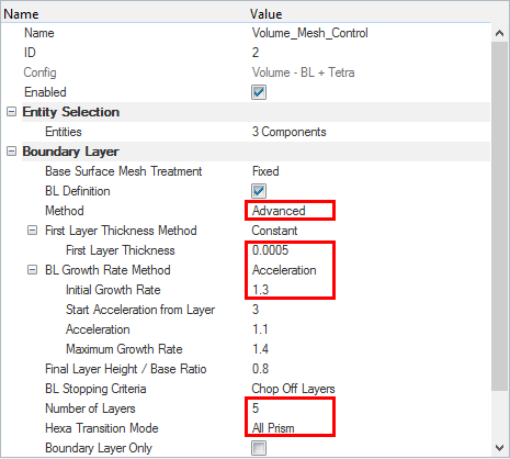 最初にサーフェスメッシュコントロールを作成してから、アクティブな境界層を持つボリュームメッシュコントロールを作成します。その後で、境界層を必要としないサーフェス用のボリュームメッシュローカルコントロールを追加します。