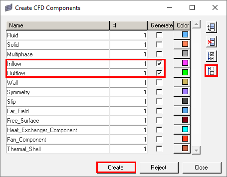 図 5. CFDツールバーCFDツールバーには、エンティティの作成、削除、および編成、メッシングパネルへのアクセス、およびAcuConsoleまたはAcuSolveの起動を行うためのオプションがあります。