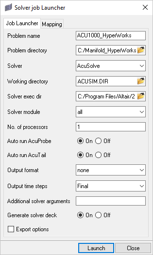 この手順では、HyperMeshからAcuSolveを直接起動して解析を完了します。