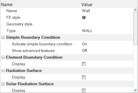 サーフェスグループは、サーフェスに関する情報を保存するためのコンテナです。この情報には、解析およびメッシングパラメータや、パラメータが適用される形状内の対応するサーフェスが含まれます。