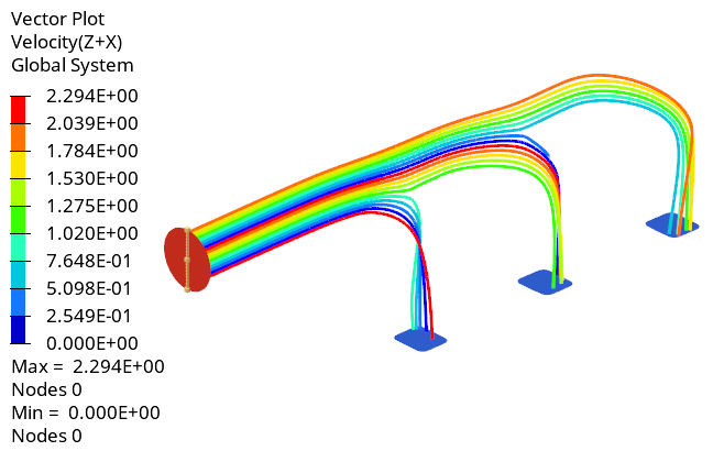 このチュートリアル、では、CFDシミュレーションを実行するための基本的なワークフローを通して作業し、HyperMeshおよびHyperViewというHyperWorks製品を使用して結果をポスト処理しました。まず、HyperMeshでモデルをインポートしてメッシュ処理しました。また、モデルを設定して、HyperMesh内から直接AcuSolveを起動しました。AcuSolveによる解析が完了した後、HyperViewを使用して結果をポスト処理しました。境界サーフェスと切断面、速度ベクトル、および流線上でコンターを作成する方法を学習しました。
