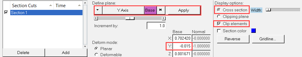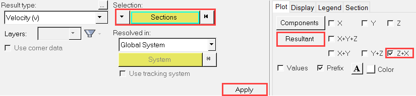 切断面での圧力および速度コンターの作成