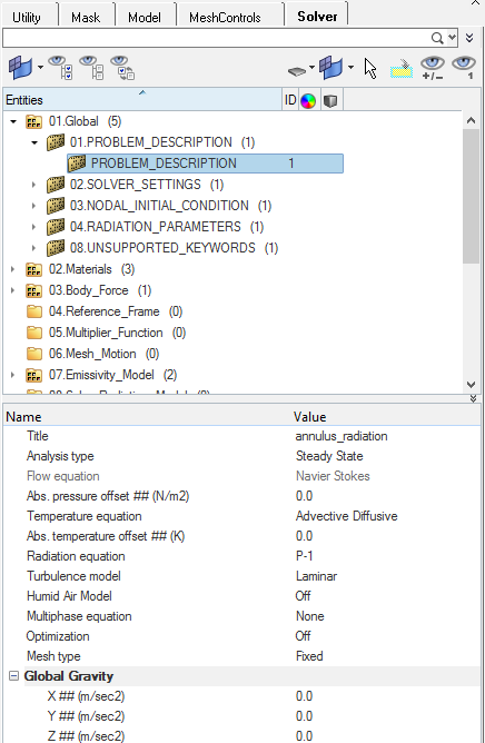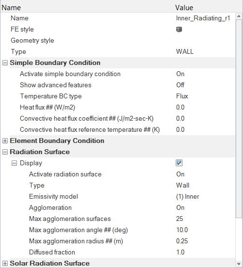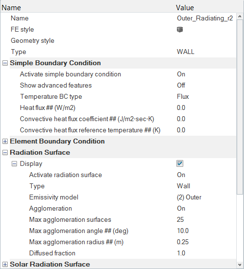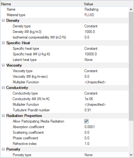 この手順では、放射率モデルやサーフェスの境界条件などの輻射パラメータを問題に定義し、流体領域と固体領域に材料特性を割り当てます。