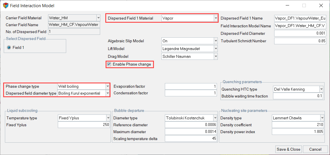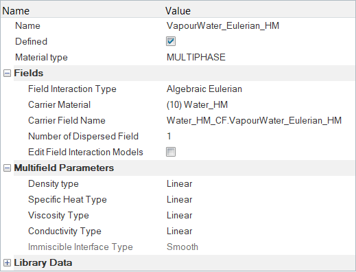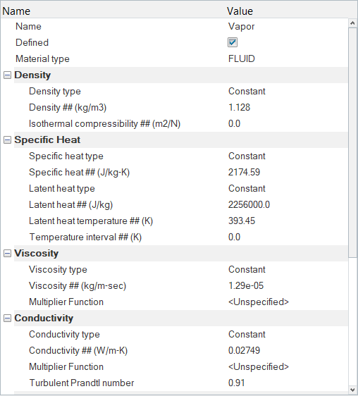 この手順では、まずVaporという名前の新しい材料を作成します。次に、多相材料モデルを設定します。