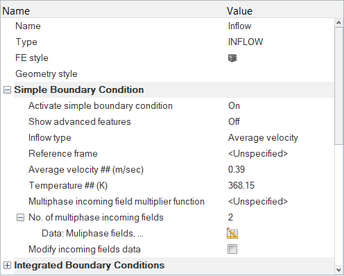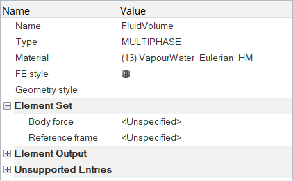 この手順では、多相流体ボリュームに材料特性を割り当て、つづいてサーフェス境界条件を割り当てます。