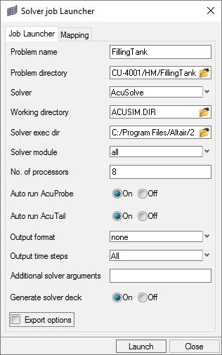 この手順では、HyperMeshからAcuSolveを直接起動して解析を完了します。