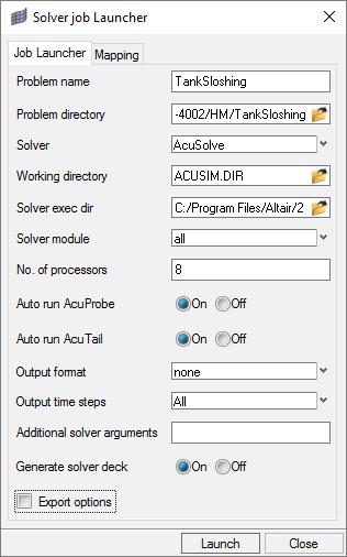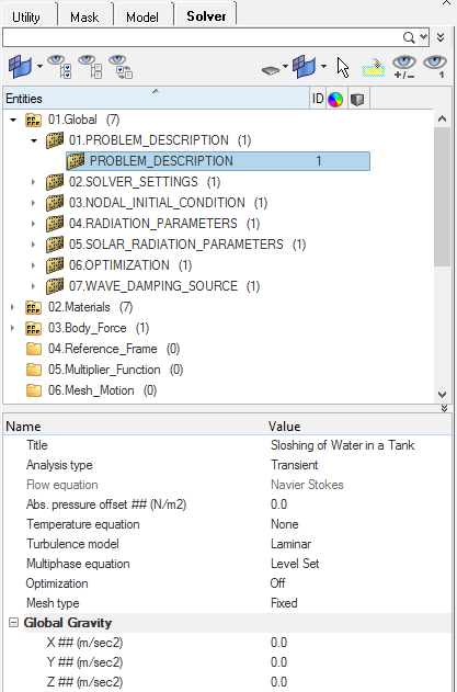 このチュートリアルを実行する前に、HyperMesh_tutorial_inputs.zipを<Altair_installation_directory>\hwcfdsolvers\acusolve\win64\model_files\tutorials\AcuSolveから作業ディレクトリにコピーします。 ACU-T4002_SloshingTank.hm およびgravity.cHyperMesh_tutorial_inputs.zipから