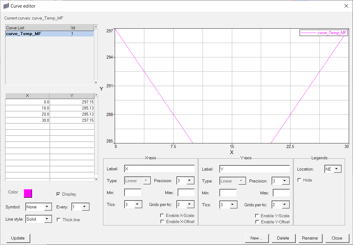 上のプロットから、空気ボリュームの初期温度は297.15Kに設定されていることがわかります。底壁の温度は、1秒間で285.13Kに低下し、1秒間285.13Kを保ち、1秒間で元の297.15Kまで上昇しています。70%の相対湿度における空気の露点温度は291.14Kであり、0.5秒と2.5秒の時点で露点温度に達しています。全体的に見ると、前述のとおり、露点温度に達したときに、結露と蒸発の両方が発生していることがわかります。