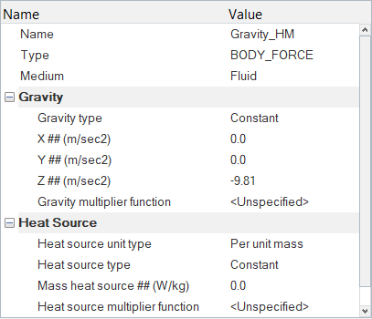 この手順では、この問題の材料特性を定義し、流体ボリュームに物体力を割り当てます。