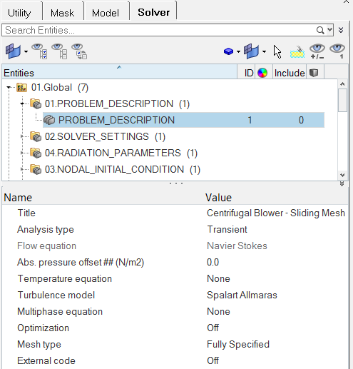このチュートリアルでは、スライディングメッシュアプローチを用いた遠心送風機の過渡解析の設定、解答、結果の表示方法について説明します。このチュートリアルを実行するには、ACU-T:5000 移動座標(定常)による遠心送風機を既に完了し、作業ディレクトリにその解が保存されている必要があります。ここでは、HyperMesh、HyperMesh、およびHyperViewをある程度使い慣れていることを前提としています。