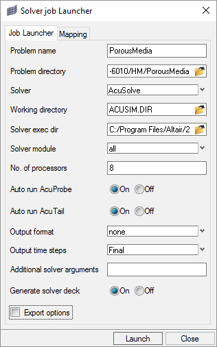この手順では、HyperMeshからAcuSolveを直接起動して解析を完了します。