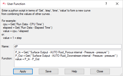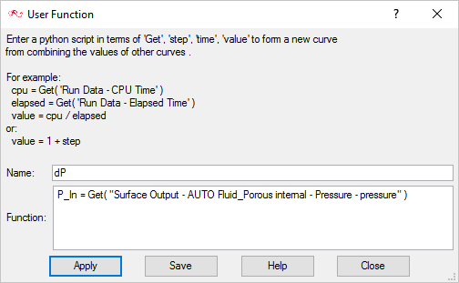 解析の進捗に伴い、AcuProbeが自動的に起動します。AcuProbeを使用して、解析時間におけるさまざまな変数をモニターできます。このステップでは、残存率の値のプロットを作成し、多孔質部分全体にわたる圧力低下を計算します。