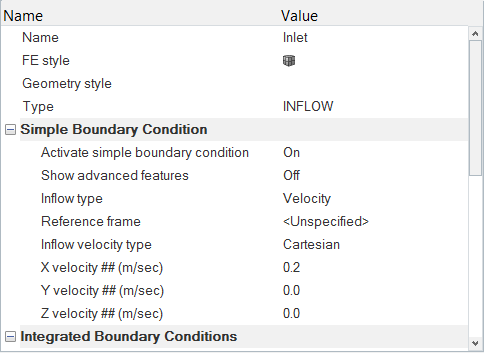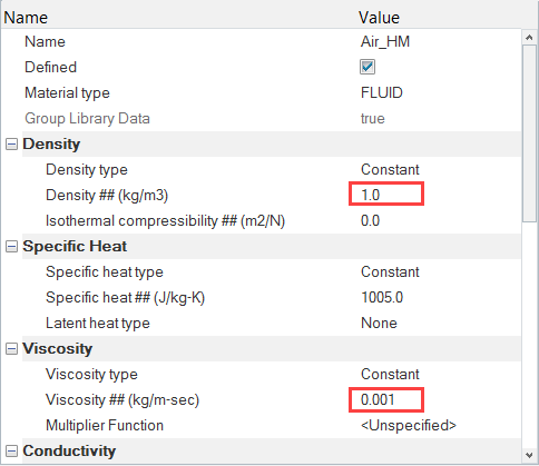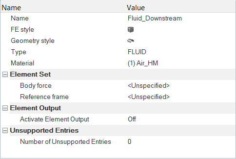 この手順は、空気の材料特性を変更する作業から開始して、多孔質媒体の材料モデルを作成します。つづいて、流体ボリュームにサーフェス境界条件と材料特性を割り当てます。
