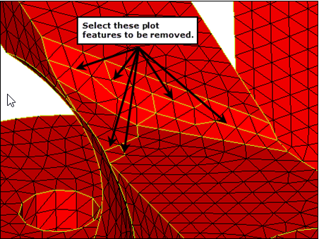 メッシュの特徴線に対応するプロット要素を作成します。これらのプロット要素は、edges、featuresおよびedit elementパネルを用いて作成することが可能です。Featuresパネルを使用すると、プロット要素の作成がほぼ自動で行えますが、目的のフィーチャーが必ずしも作成されるとは限りません。自動的に作成された特徴線を修正するための手動による修正機能が利用できます。