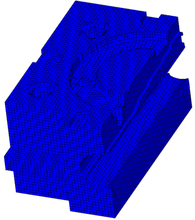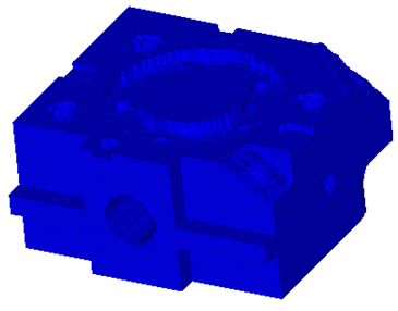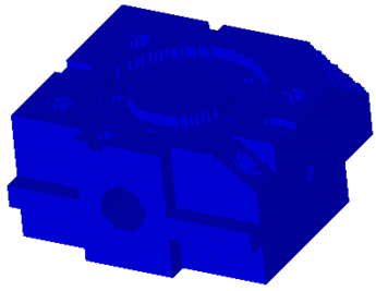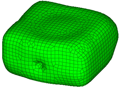 要素サイズは、シュリンクラップによるモデル形状への追従性に影響を与えます。要素サイズが大きいほど、モデルはより簡略されます。要素サイズが小さいほど、シュリンクラップはモデルにより沿ったものとなります。ソリッドメッシュのヤコビアン値も、同様の影響を与えます。ヤコビアン値が小さくなるほど、シュリンクラップはモデルの輪郭により沿ったものとなります。ヤコビアン値を小さくすることにより、メッシュの作成のための時間がより長くなる点に注意してください。