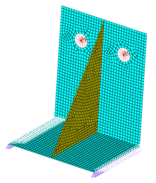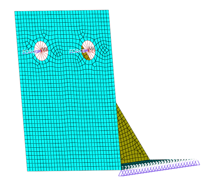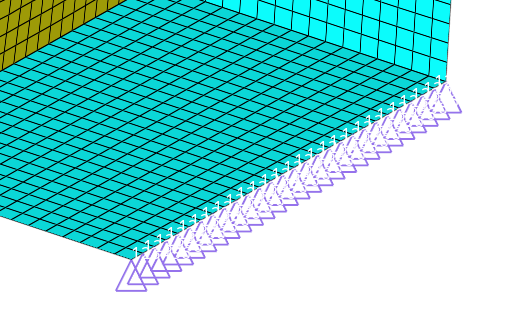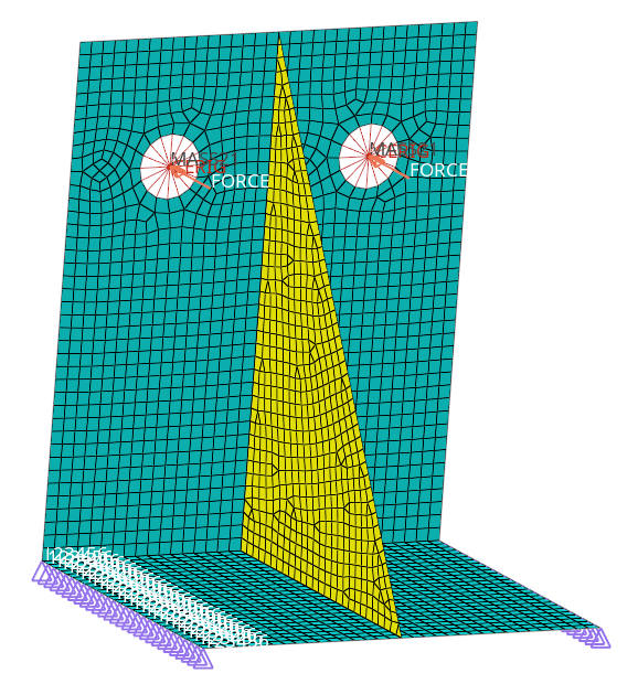 ここでは、拘束用荷重コレクターの作成、モデルへの拘束条件の適用、force1/force2/force3の各荷重コレクターを使用したmass要素への集中荷重の適用、複数の荷重ステップの作成、コントロールカードへの /SOLU, ANTYPEとLSSOLVEの追加、ANSYS *cdbフォーマットのデックのエクスポートを行います。