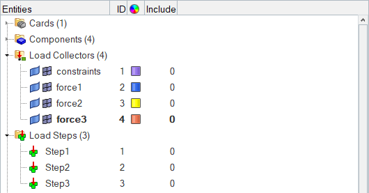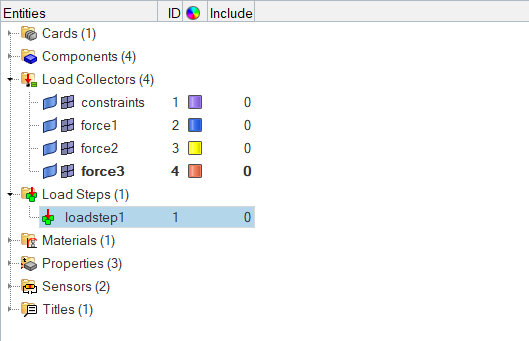 このステップでは、force3荷重コレクターでmass要素に集中荷重を適用します。