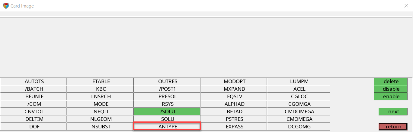 コントロールカードへの /SOLU, ANTYPEとLSSOLVEの追加