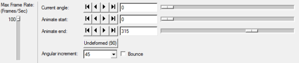 図 2. また、Animation Controlsパネル内で、Angular Incrementを設定することも可能です。これは、モデルをアニメーション表示する際に使用されます(上の画像を参照)。アニメーションを開始するには、Start/Pause Animationボタン