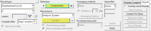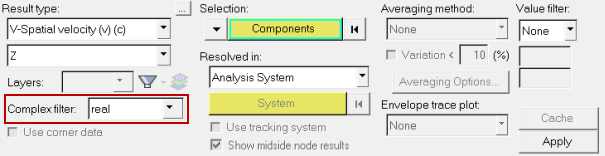 複素結果は、Result type listで結果名に(c)のついたかたちで表示されます。Contourパネル内のその他の選択肢は、複素結果の場合も複素結果以外の場合も同じです。