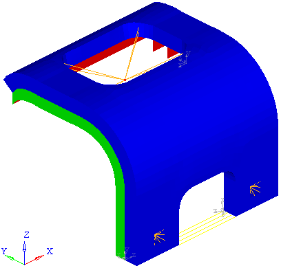 本演習は、複素結果のポスト処理がHyperViewでどのように行われるかの例です。使用されるモデルは4つの荷重ケースを含みます。1つ目の荷重ケースには、静的結果が含まれます。2つ目の荷重ケースは、除荷構造にモデルをリセットし、固有振動数が抽出される荷重ケース3に使用されるベースの状態です。荷重ケース4では、節点(ID10000)内のベアリングの動的載荷によるクリップ上の質量要素(要素ID 999)の応答が解析されます。モデルは節点9999で6つの自由度全てで固定されています。