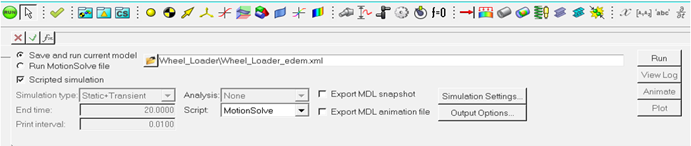 Figure 4. MotionSolveとEDEMを組み合わせたシミュレーションを実行するためのユーザーインターフェース