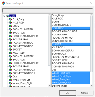 Figure 3. Select a GraphicダイアログNote:- 現在のところ、この機能でサポートしているグラフィックスは、Box、CADGraphic、Cylinder、Ellipsoid、File(H3D/OBJなどのメッシュベースのグラフィックス)、およびSphereです。これら以外のグラフィックスをAdvanced Graphicsセレクターダイアログで選択しても使用されず、警告メッセージが表示されます。