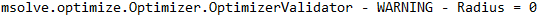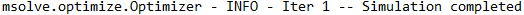 - コスト関数または感度を評価するたびに、実行される処理を通知するログメッセージが最適化エンジンによって生成されます。このメッセージはmsolve.optimize.Optimizerで始まり、次のような内容を記述しています。