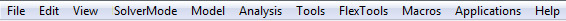 - メインメニューバーには、各ツールバーに用意されているすべての機能が含まれます。またメインメニューには、FlexPrep、Import CAD/FEM、Macrosなどの有益なユーティリティが含まれています。