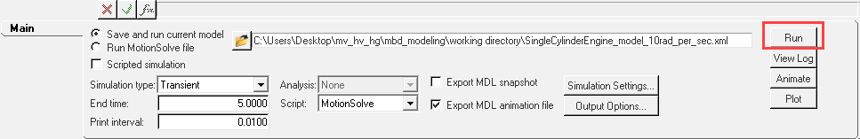 このステップでは、MotionSolveを起動してモデルを解析します。